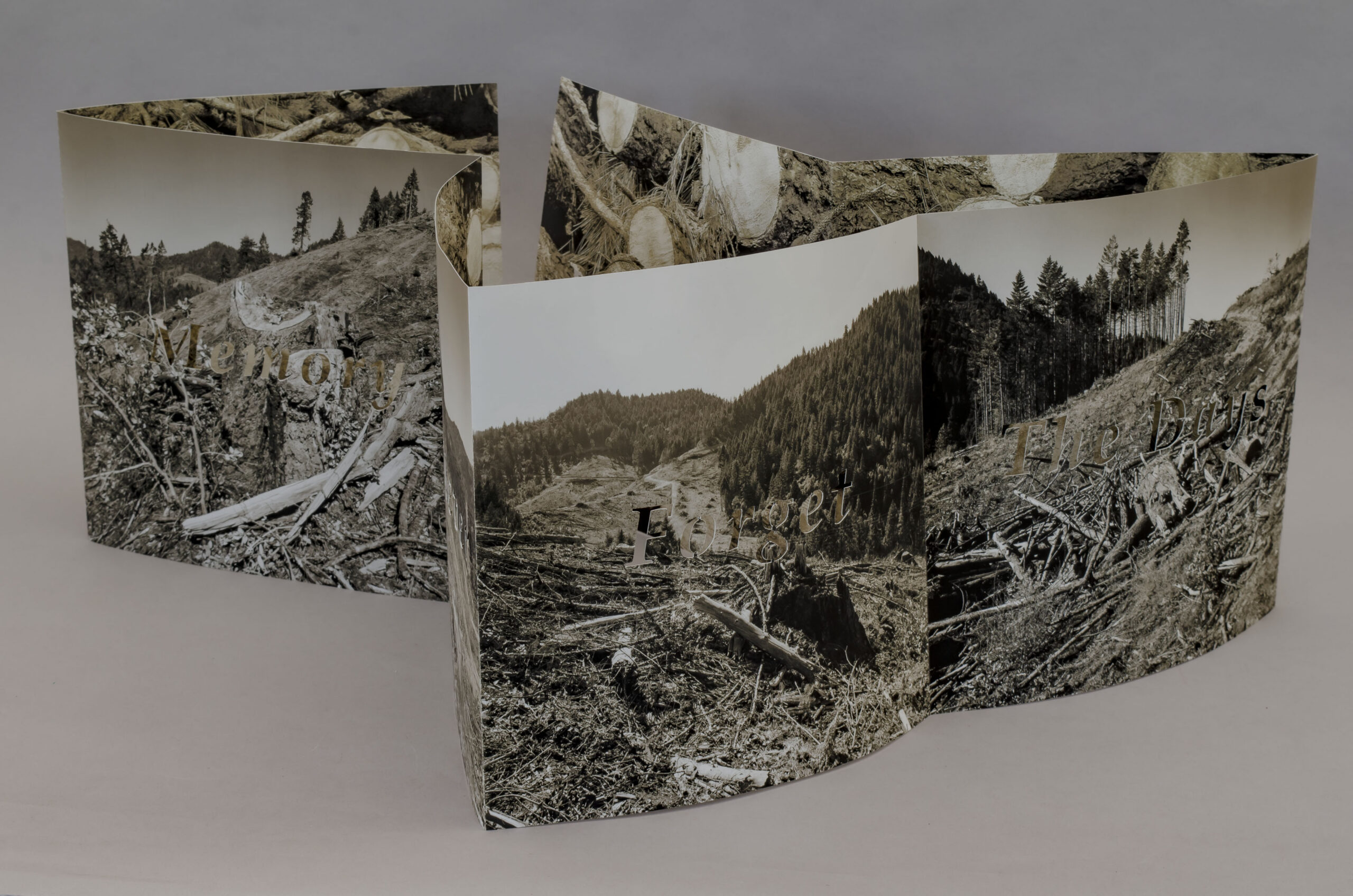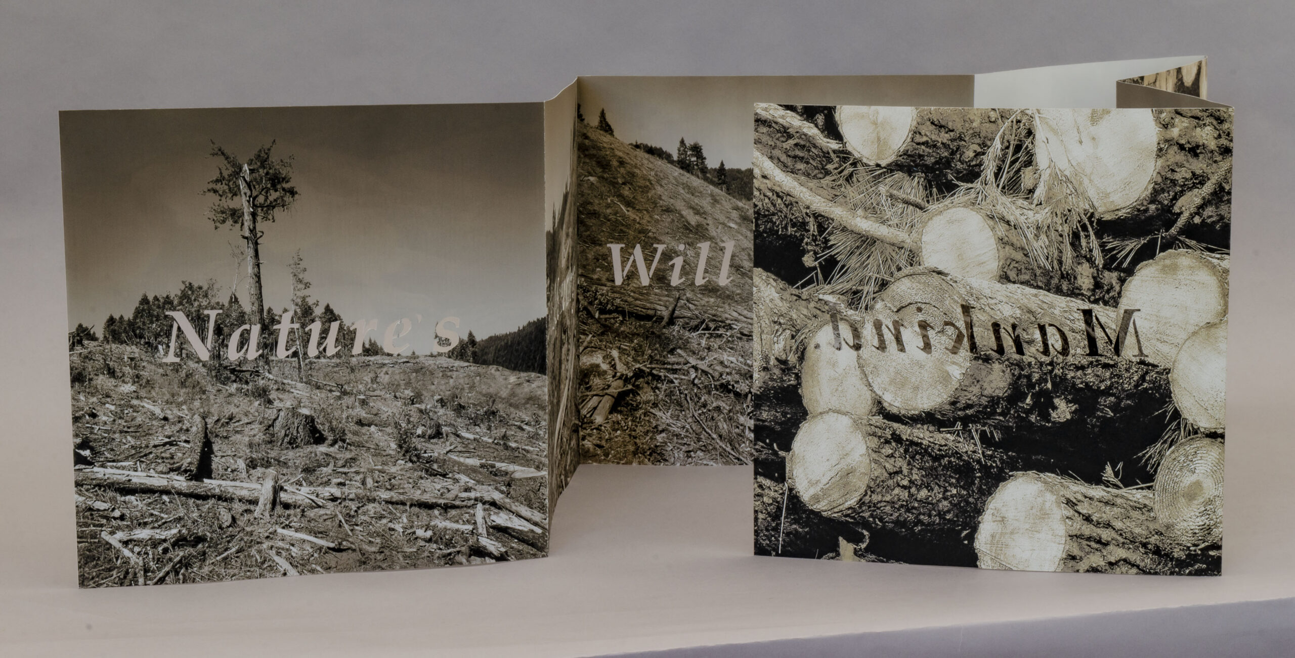 Accordion fold artist book, Photographs archival pigment print, handcut poem. edition of 10
