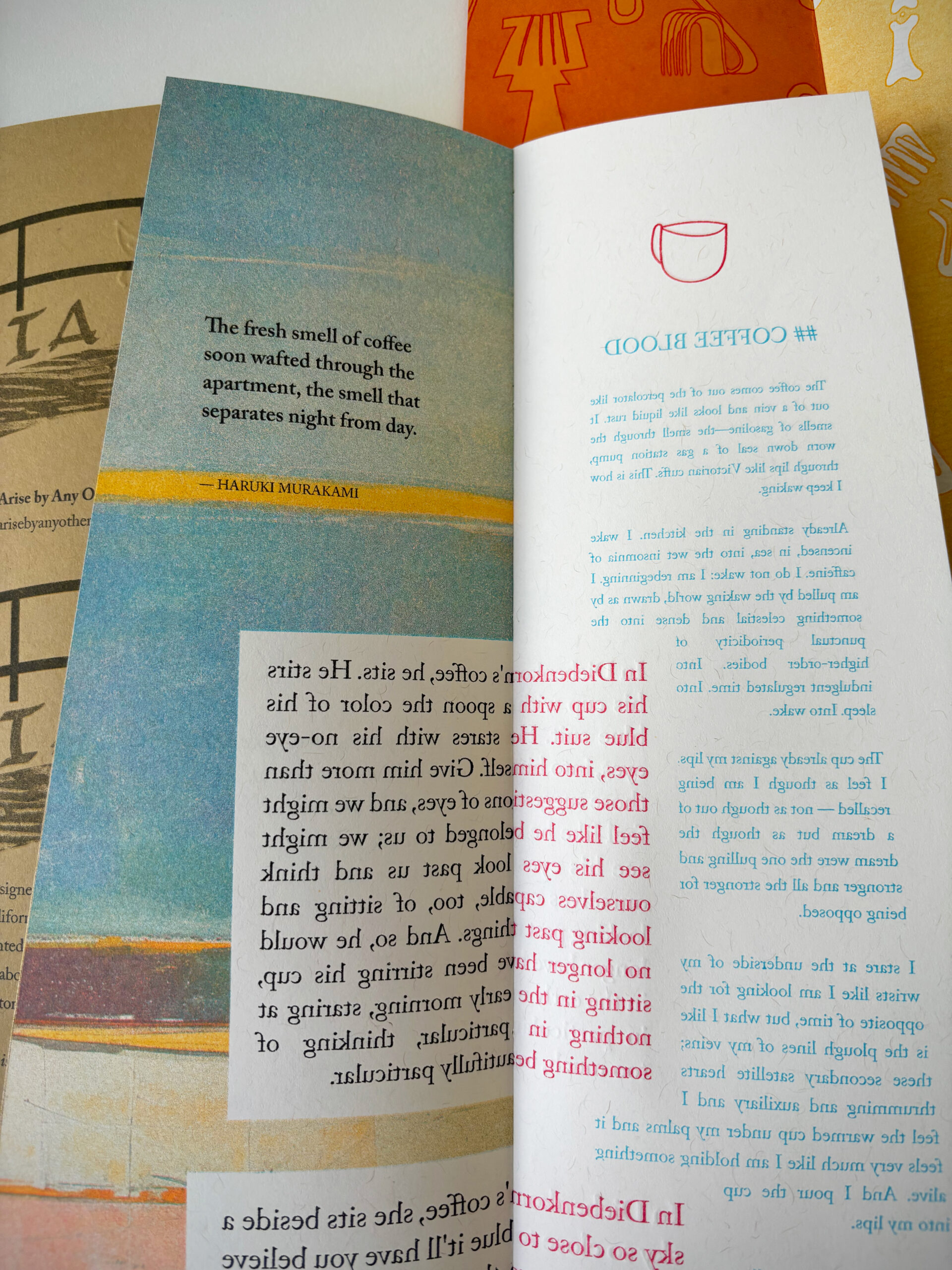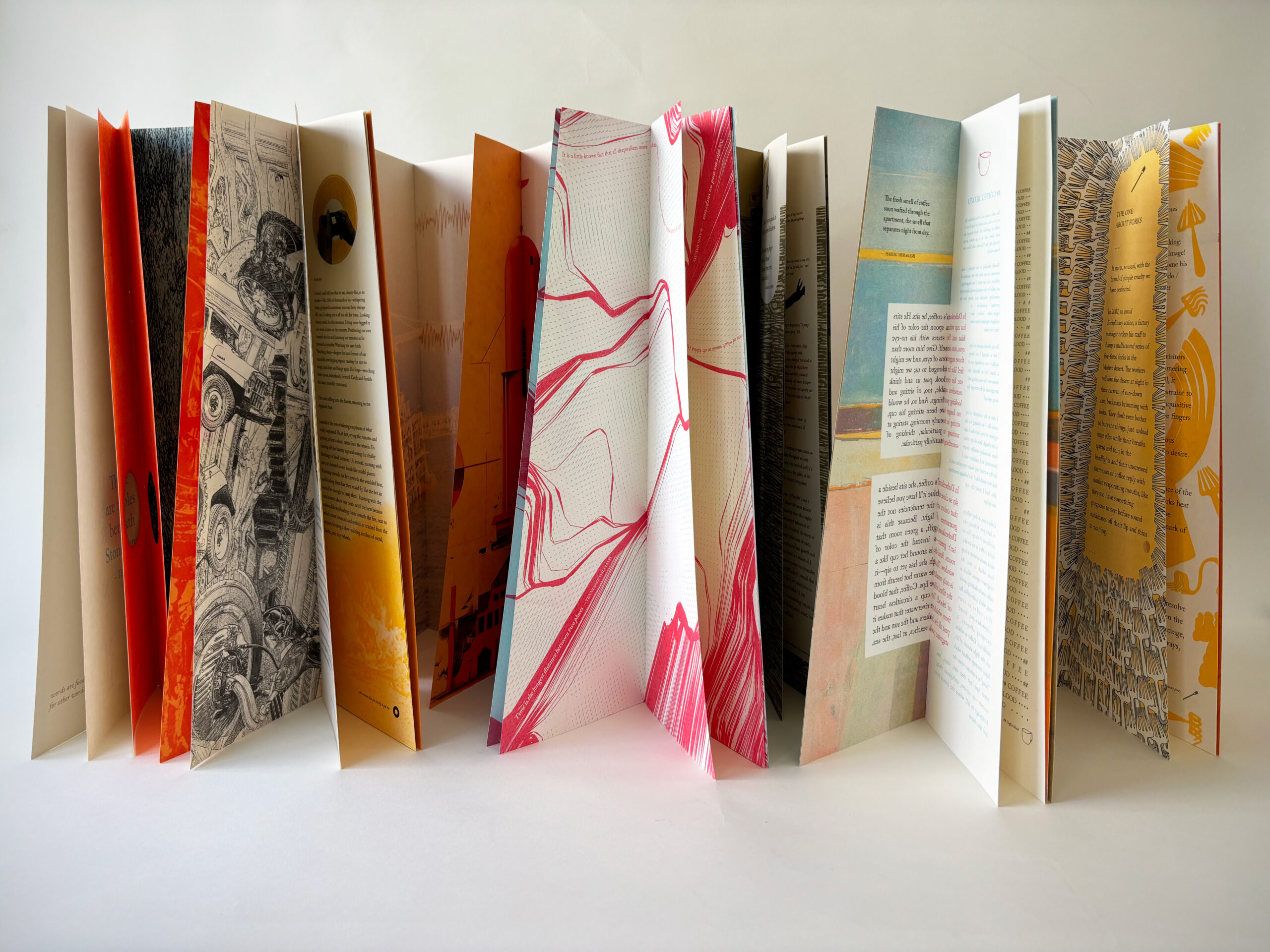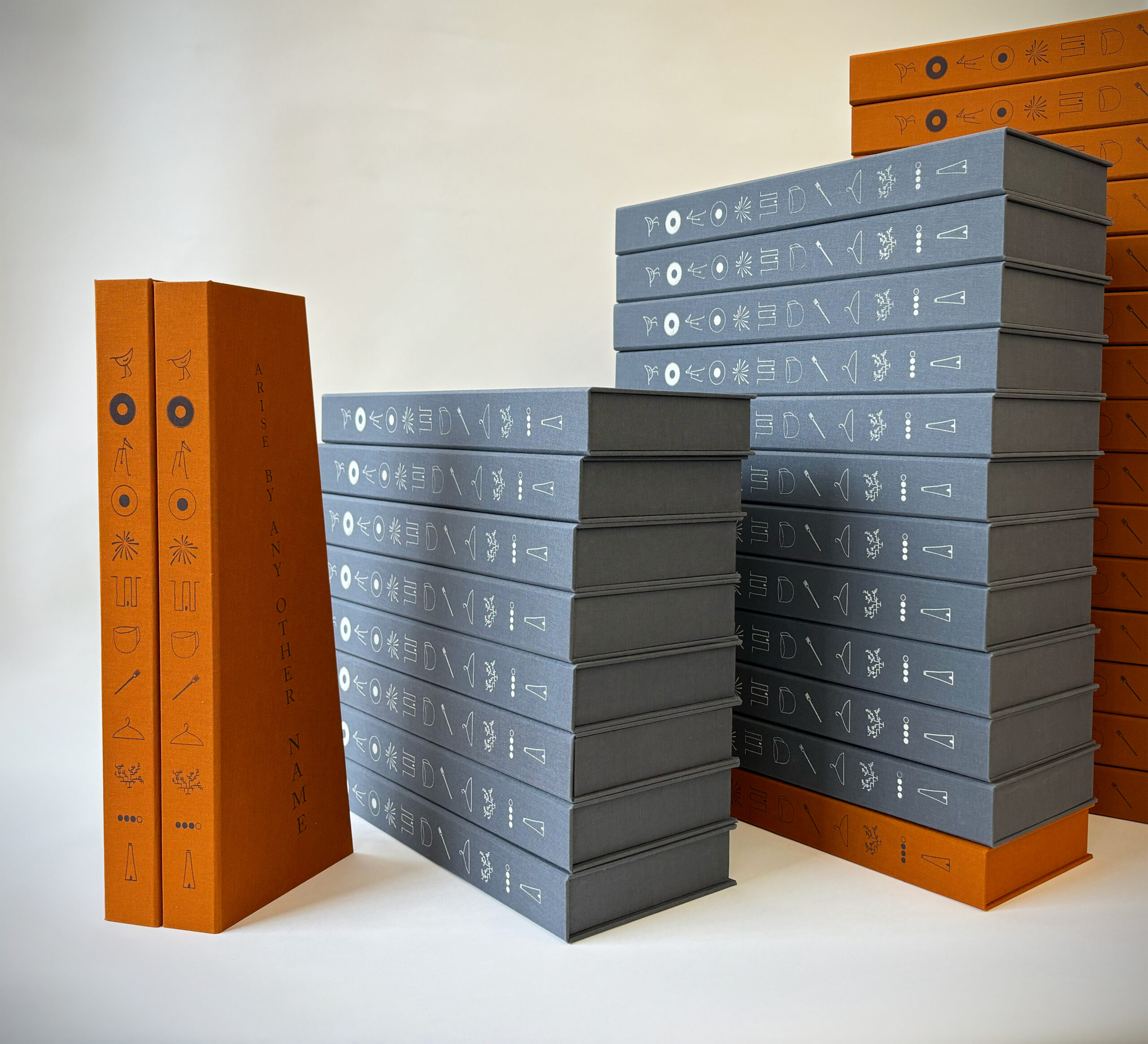 Arise by Any Other Name explores how book-arts and artistic collaborations recontextualize language and stories. Each person has an “idiolect” —Steiner—. To work on a project together, and to experience it, is translation. Arise is a reflection on how every book is constantly changing. You cannot step into the same book twice, but this is what makes books worth reading. Text is static and reproducible; what each of us adds and brings makes it alive.