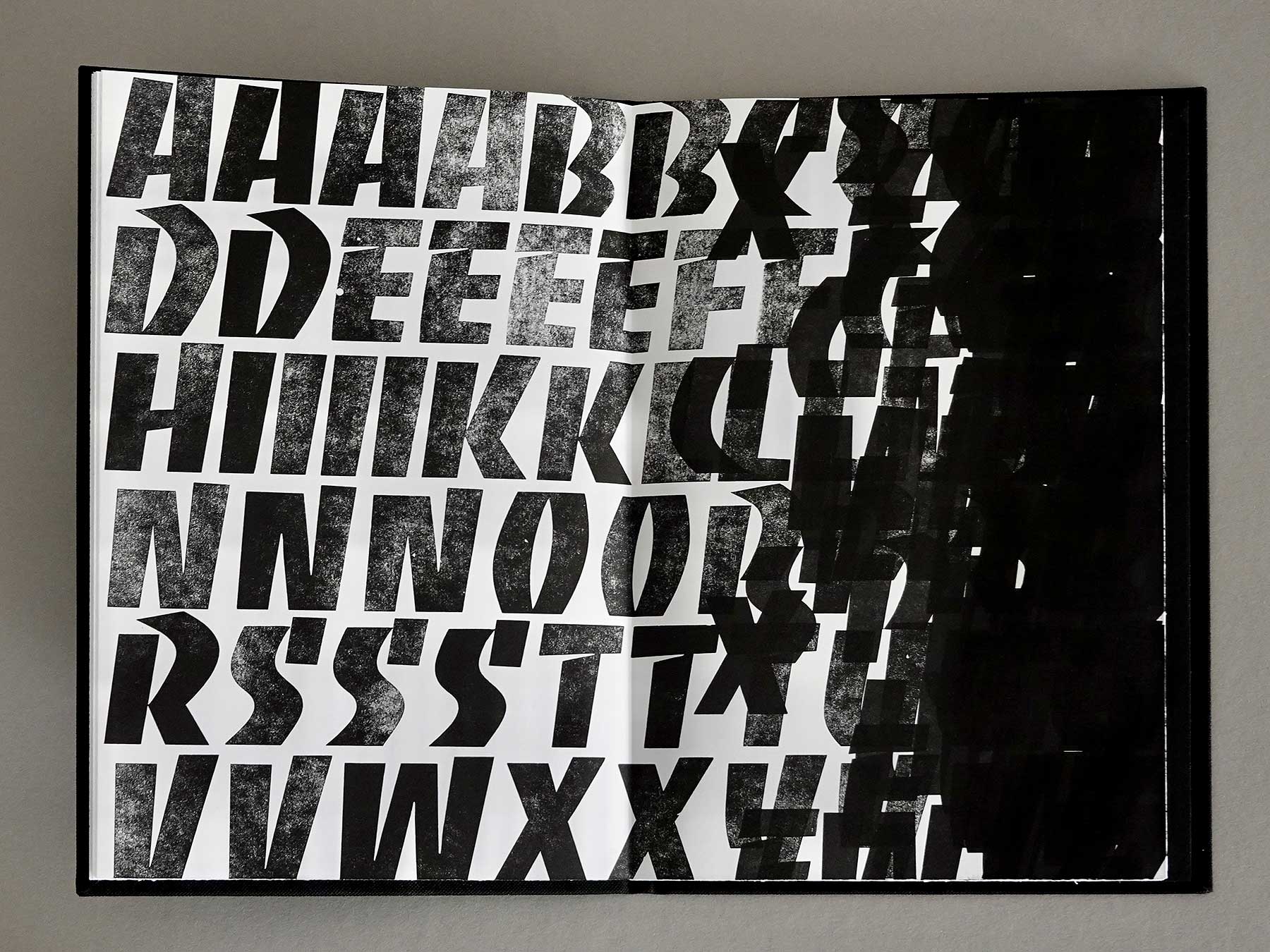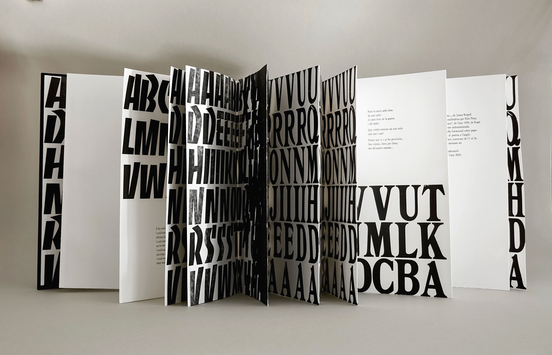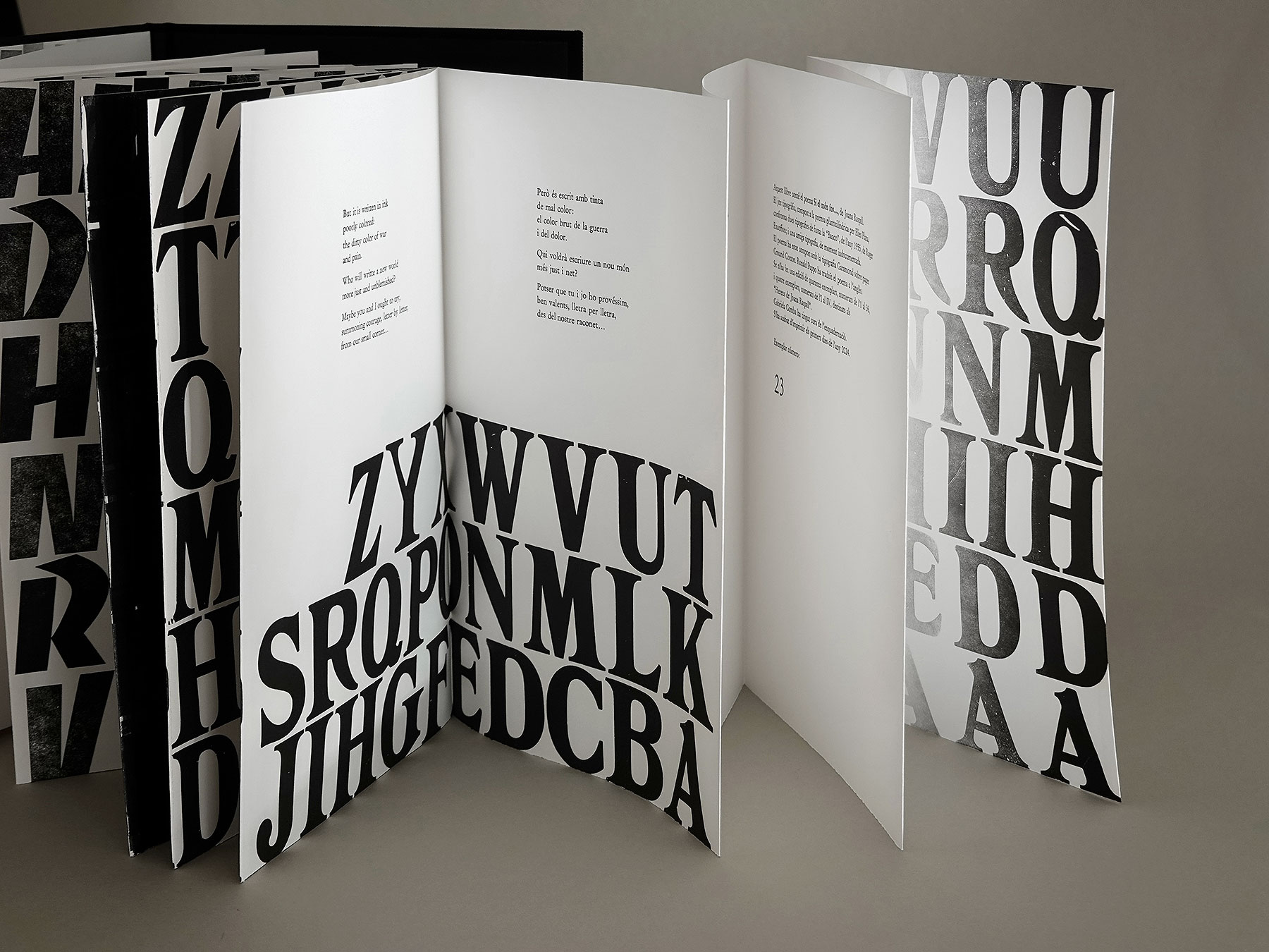 The book presented in concertina illustrates the scenario of a battle. Wooden types, including Roger Excoffon’s Banco and an ancient family type that is still unknown, are used to illustrate the armies and soldiers.