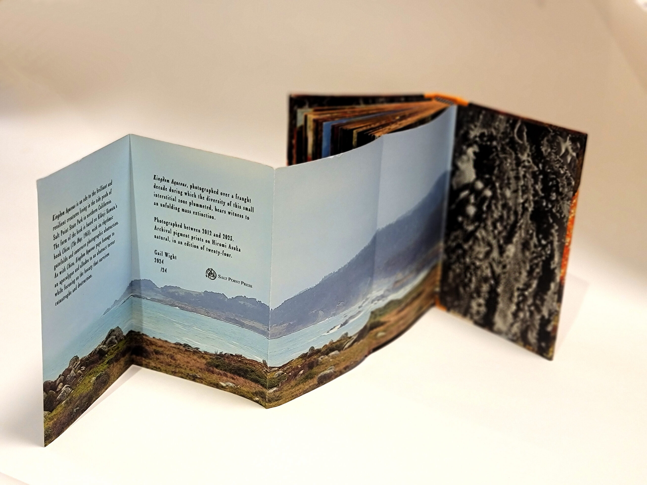 Photographed in the tide pools at Salt Point State Park in northern California over a period of twelve years, Kingdom Aqueous is an ode to the creatures who live in this wild interstitial zone at the brink of the sixth mass extinction. Printed full bleed, these images disclose the intense vibrancy and other-worldly architecture of life beneath these cold and stormy northern waters, at a moment of catastrophic change.