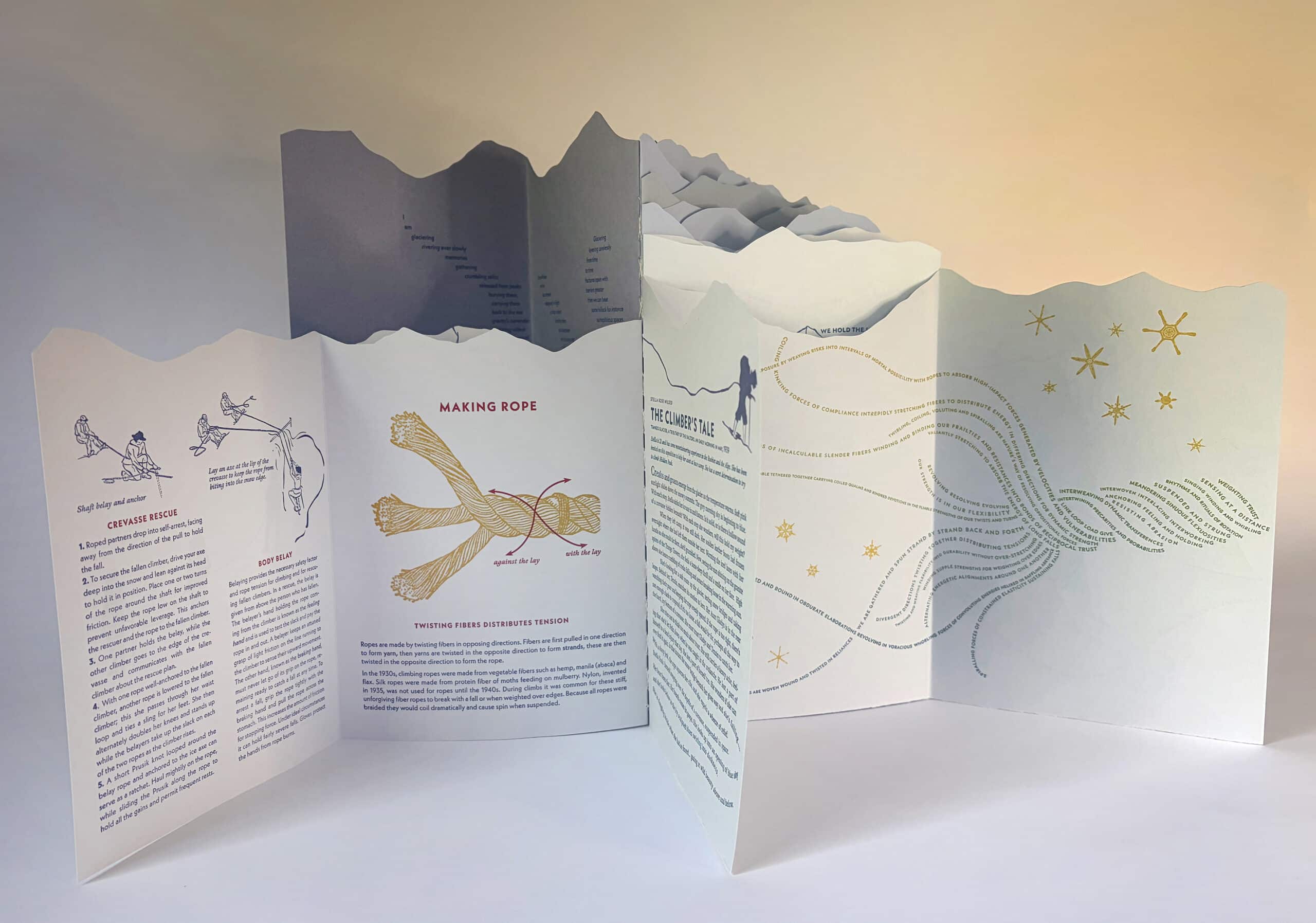 Papers used are 175 gsm Somerset text, a mouldmade cotton produced in St. Cuthbert’s Mill in the United Kingdom, 300gsm Moulin du Gué, made of cotton and flax, produced in the Rhône-Alpes region of France, Colorplan, and Lettra Text.